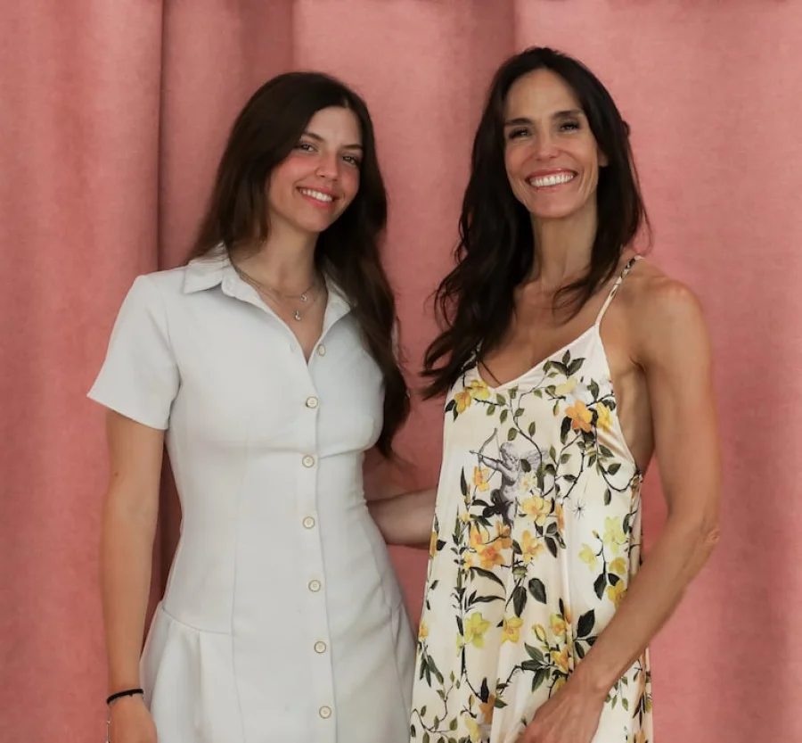 María Susini asistió al evento con India, su hija adolescente. La modelo eligió un vestido blanco sin mangas con estampado floral en amarillo. Su heredera optó por un modelo color crudo con mangas cortas y abotonado.