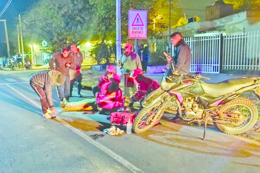 Posteriormente, siendo las horas 22.56 del miércoles, se produce un siniestro vial entre la calle fray Luis Beltrán y Avenida Independencia, por donde circulaba Gastón Alexis Reinoso, de 27 años, en una motocicleta Corven 150 cilindrada, sin dominio en sentido Norte a Sur, y antes de llegar a la calle fray Luis Beltrán y por motivos que se desconocen, pierde en control del rodado cayendo pesadamente a la cinta asfáltica, registrando traumatismo en miembros inferior y superior derecho con un corte profundo en el dedo índice.