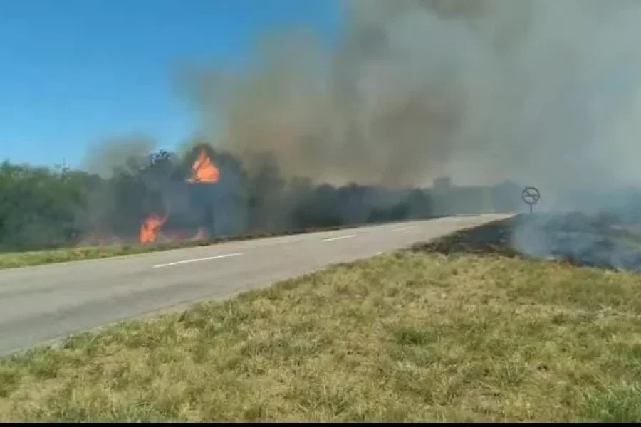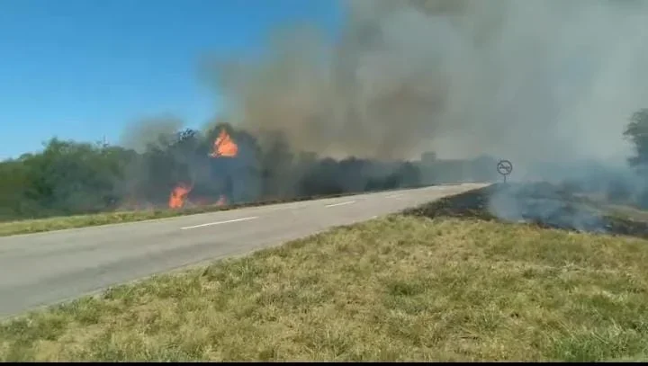 Un foco de incendio forestal se desarrollaba este lunes en una zona de campo ubicada a unos 2 kilómetros del acceso a Santa Bárbara, en las inmediaciones de la Ruta Nacional 79.