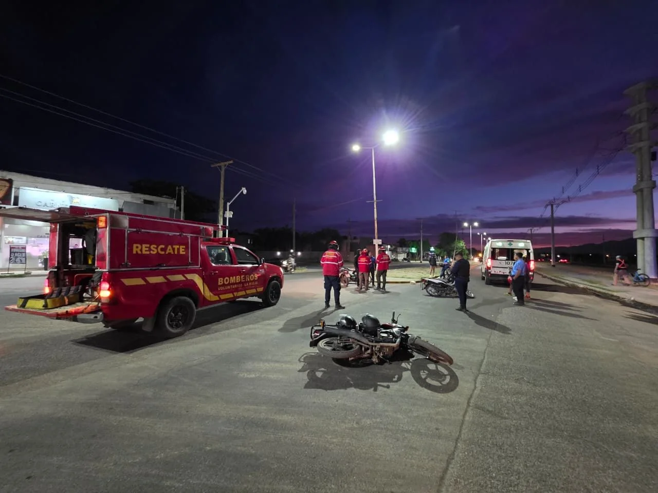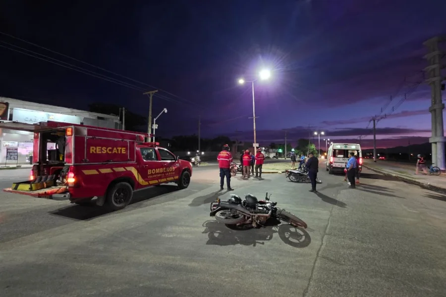 Cerca de las 19:58 de este sábado, se registró un accidente de tránsito en la intersección de Av. Ortiz de Ocampo y Bicentenario. El siniestro involucró a dos motocicletas: una Honda Wave 110cc de color blanca, conducida por una mujer de apellido Chumbita (49 años), y una Honda GLH negra, al mando de un hombre de apellido Brito (52 años).
