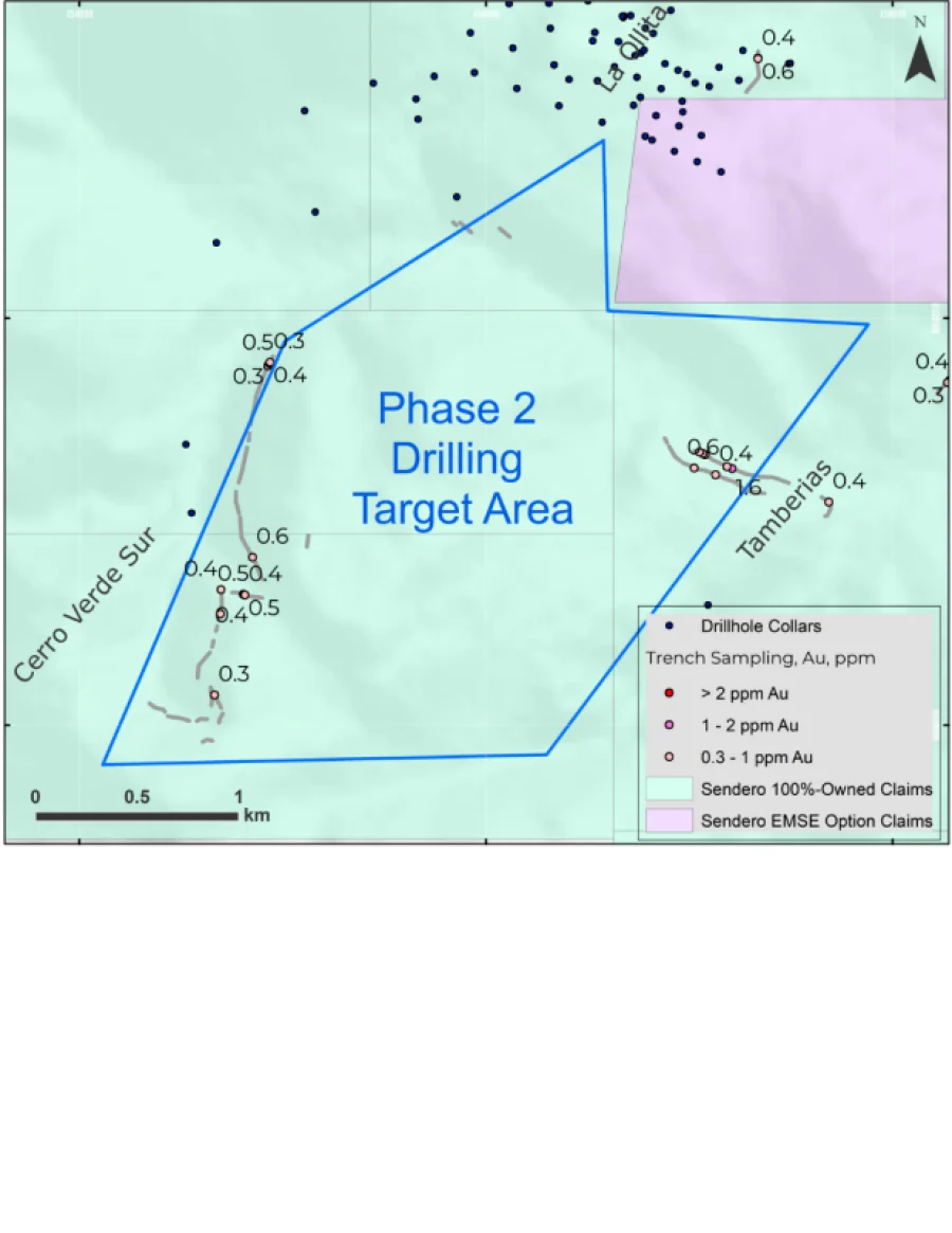 Durante la primera etapa, Sendero ejecutó 3.126 metros de perforación en ocho pozos y relevó más de 700 kilómetros de magnetismo y radiometría aérea. También llevó a cabo estudios de superficie e integración de datos geológicos, geofísicos y geoquímicos, que permitieron delinear nuevos objetivos de perforación.