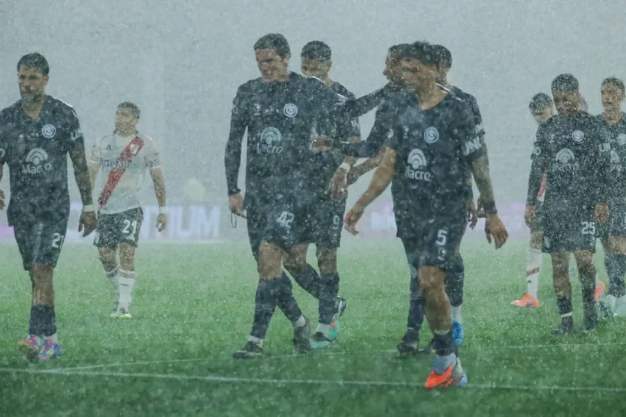 Transcurridos los minutos, los 22 futbolistas salieron al campo de juego nuevamente para probar el terreno y chequear cómo rodaba la pelota luego de la copiosa lluvia. El staff del Mario Alberto Kempes trabajó a destajo durante varios minutos para poner lo más a punto posible la cancha.