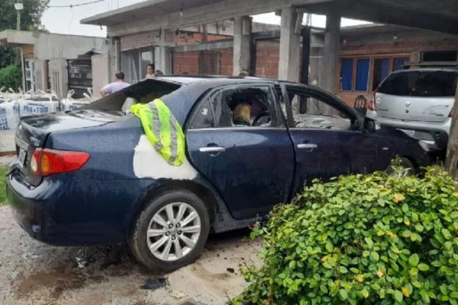En llamas, se bajó del Corolla y corrió hacia la casa, donde fue asistido por familiares de la joven.