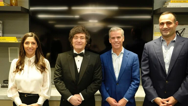 Milei llegó a la sede de “Atlantic Council Global Citizen Awards 2025″ a última hora del miércoles. En su arribo al salón fue captado por Infobae cuando compartió un abrazo con el nuevo embajador de los Estados Unidos en Argentina, Peter Lamelas. En la mesa también se encontraban ya como comensales compartiendo con el presidente argentino el propio Scott Bessent, el ministro de economía Luis Caputo, la secretaria general de la presidencia Karina Milei, el embajador argentino en los Estados Unidos, Alejandro Oxenford, el canciller Gerardo Werthein, entre otros destacados ejecutivos y empresarios.