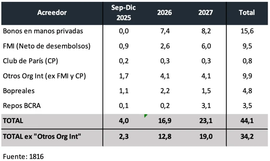 "Requieren 'muletas' que, en el primer caso, puedan ser proporcionadas por algún tipo de garantía que surja de las negociaciones entre las autoridades locales, el FMI (Fondo Monetario Internacional) y el Tesoro estadounidense, para alejar el riesgo de default de los bonos soberanos".