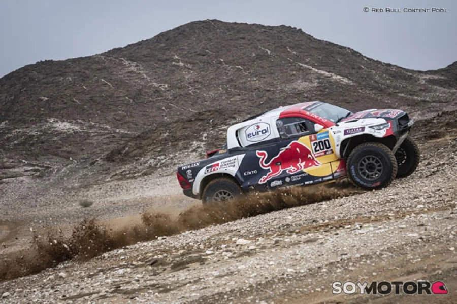 La de hoy era una etapa ‘trampa’ por varias razones: primero, porque la cancelación de la etapa para motos y quads dejaba a Nasser Al-Attiyah sin referencias; segundo, por la improvisada ‘semimaratón’ que anunció la organización –sólo dos horas de asistencia tras la séptima especial–. Nasser lo sabía… y antes de empezar ha dejado claro que hoy no era el día para ‘empujar’ con todo.