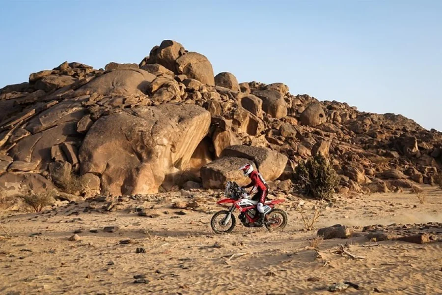 «Fue una etapa mucon mucha variedad entre piedras, arena y caminos donde se disfrutó mucho manejar pero con mucha precaución porque las piedras te sacaban la moto de las manos muy fácilmente«, señaló Benjamín Pascual al concluir la tercera etapa del Rally Dakar 2025 en Arabia Saudí, y en la cual toma parte de la categoría Dakar Future Mission 1000, con una moto china del equipo Segway, con motor eléctrico.