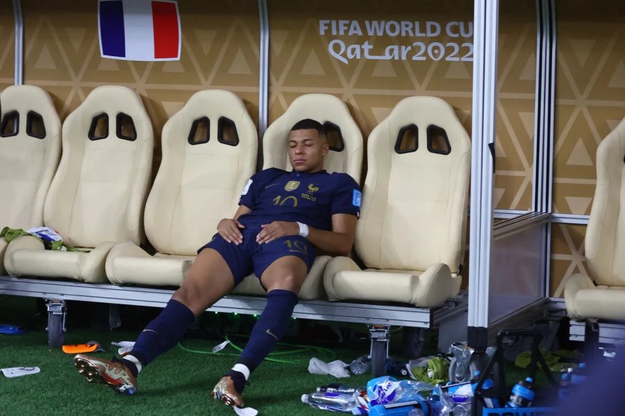 Así se lo vio a Kylian Mbappé, la estrella de Francia. En una de las fotos se lo puede ver al astro tirado sobre los asientos del banco de suplentes totalmente desmoronado tras la derrota.