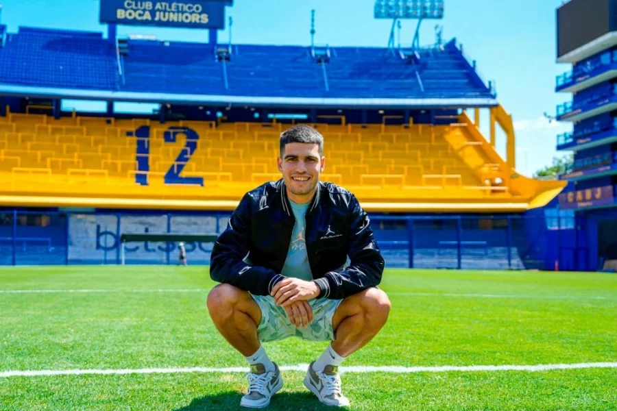 Alcaraz, quien fue número uno del planeta en 2022 luego de haber ganado el US Open (el año pasado conquistó Wimbledon), se suma a una lista de notables tenistas extranjeros que visitaron la Bombonera.