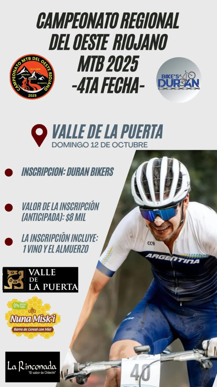 El Campeonato Regional del Oeste Riojano de MTB 2025 baja el telón de su temporada este Domingo 12 de Octubre con una 4ta Fecha que fusiona la pasión por el Mountain Bike con la deslumbrante belleza natural de la finca principal de VDLP.