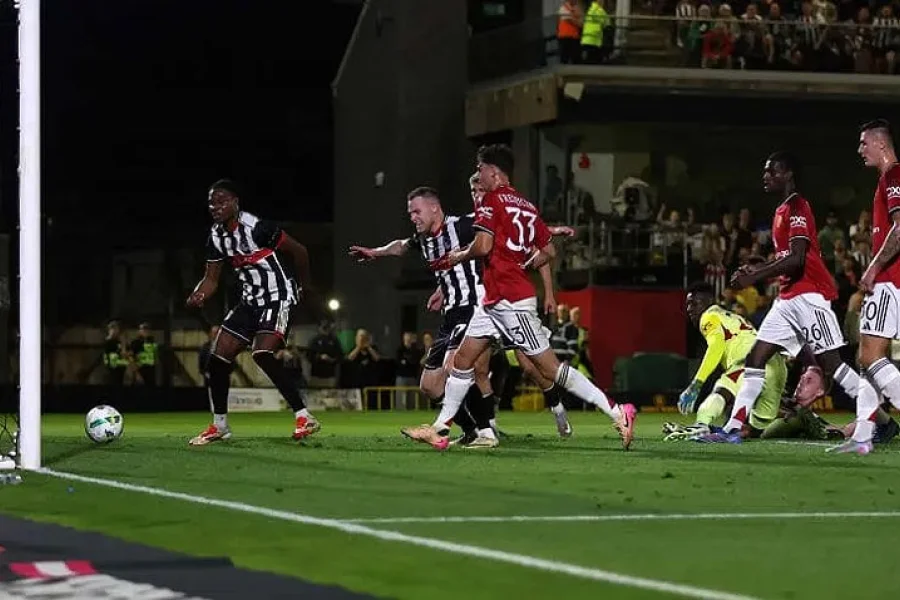 Sin embargo, el extremo Bryan Mbeumo se paró frente al punto penal y ejecutó un disparo que alteró por completo el ánimo en Blundell Park. La pelota golpeó el travesaño, y los “Diablos Rojos” terminaron derrotados y angustiados, eliminados por un equipo que milita tres divisiones por debajo.