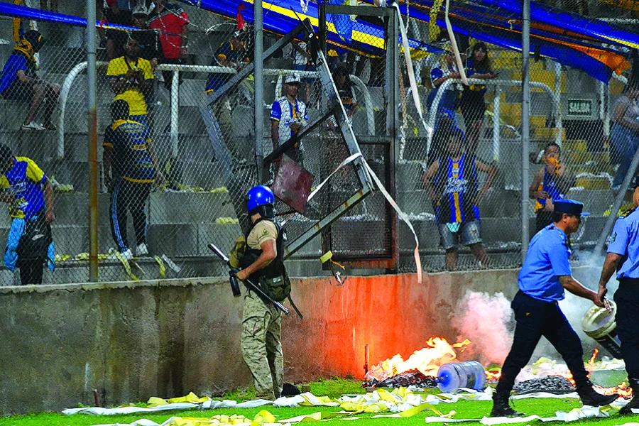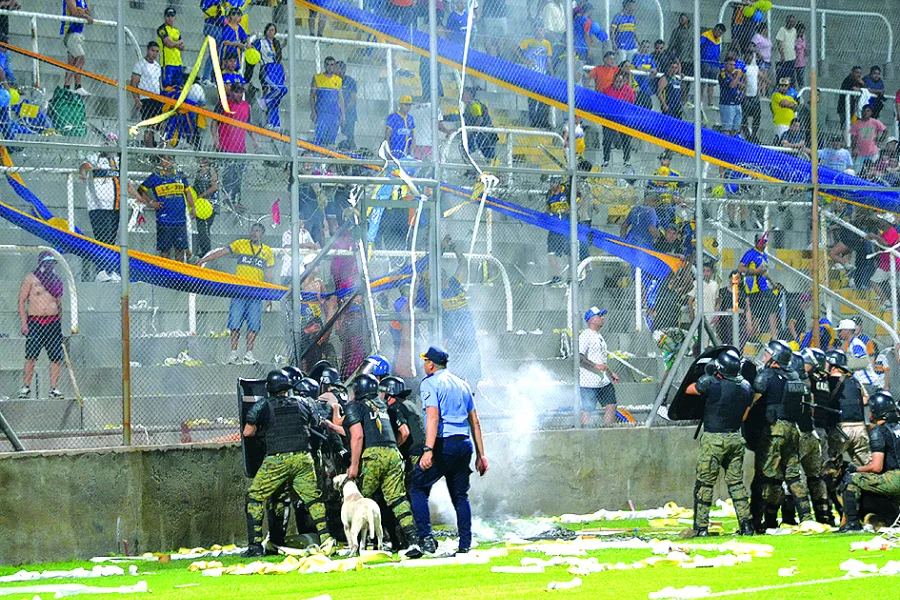 Una noche que parecía tener sensaciones de una gran fiesta para el fútbol riojano y el deporte, terminó una vez más empañándose por la gravedad de los hechos, provocados por los simpatizantes de Rioja Juniors. Los hinchas rompieron un portón y alambrado en la Tribuna Popular Norte, con el afán de ingresar al campo de juego, además de dañar y quemar distintos objetos en ese sector, lo que generó la labor policial para impedir la violencia desmedida.