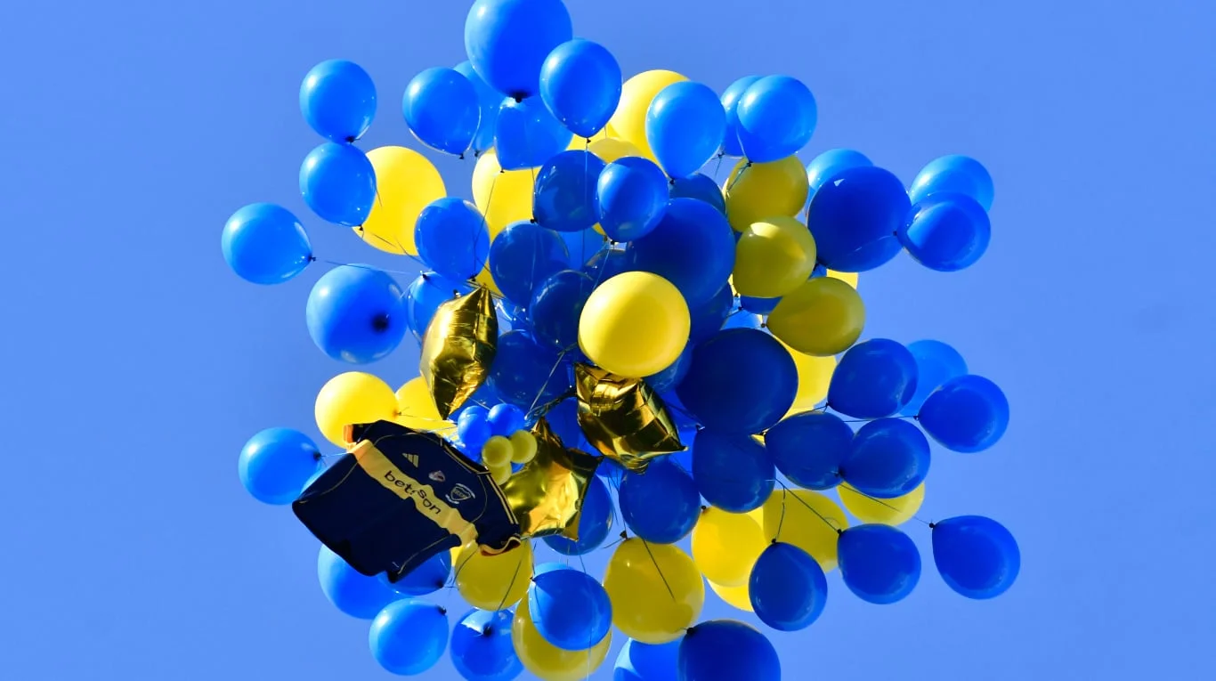 El club lanzó la camiseta al cielo atada a globos con helio en la previa del partido con Belgrano de Córdoba, disputado el 18 de octubre.