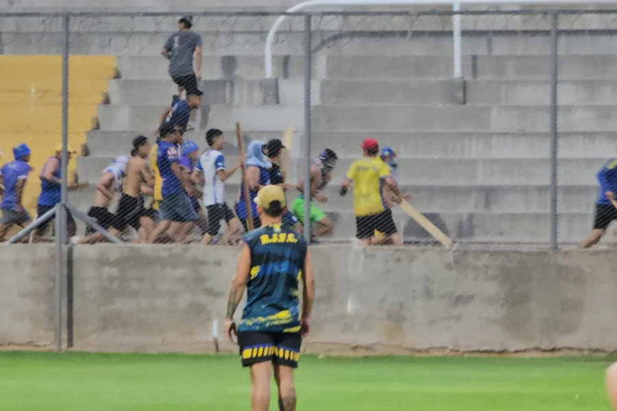 Tras el inconveniente con la energía eléctrica, Defensores de la Boca y Rioja Juniors saltaron al campo de juego para cumplir con los sesenta minutos que restaban, pero la violencia empañó el duelo y todo terminó debido a graves incidentes, tanto dentro como fuera del campo de juego.