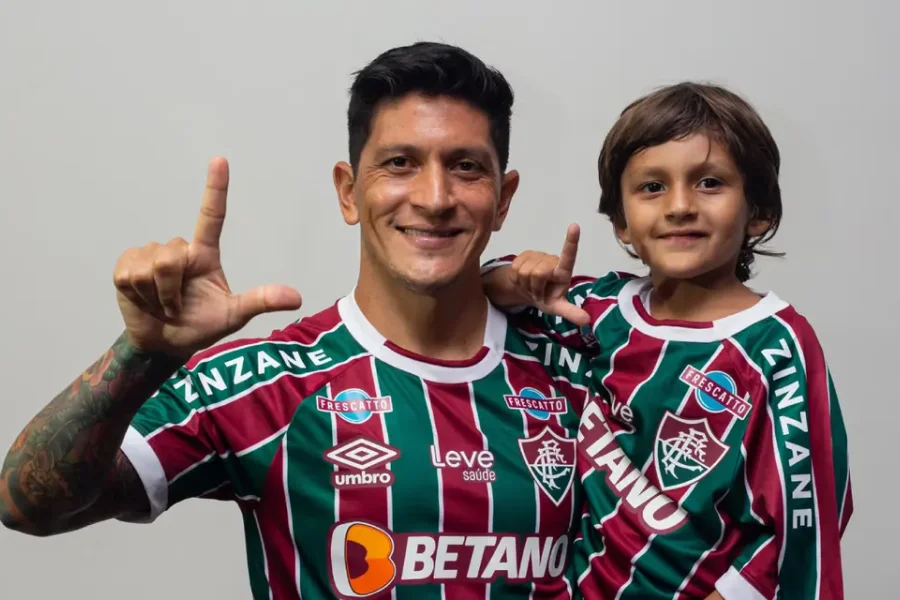 Una vez concluido el partido en el estadio Maracaná, con victoria 2-0 del equipo brasileño, la cuenta del club de Río de Janeiro posteó una foto del delantero argentino Germán Cano y su hijo Lorenzo, trepado a sus brazos.
