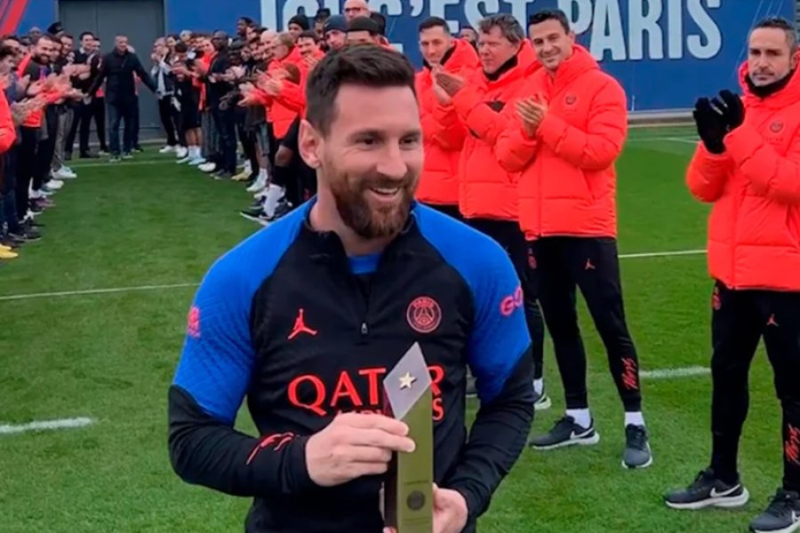 Luego de esto, el experimentado jugador hizo algunos ejercicios físicos en el gimnasio y, una vez que salió al campo de juego de Camp des Loges, fue recibido por todo el plantel. Los jugadores y todo el staff le hicieron el clásico “pasillo de honor” con aplausos al campeón del mundo. Al llegar al final de la final, lo estaba esperando el director deportivo Luis Campos, quien le entregó una estatuilla por el título en el Mundial.