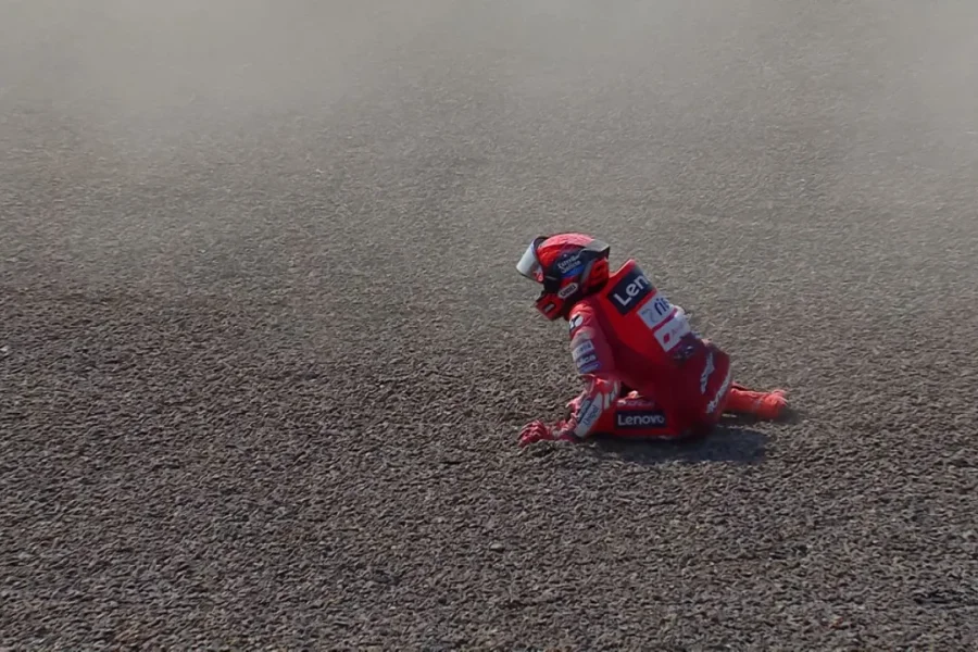 El impacto del español contra el suelo fue violento: se levantó tomándose el hombro derecho y abandonó la pista con gestos de dolor. Las imágenes recordaron su caída en 2022 en el mismo circuito, cuando una violenta maniobra durante el warm up lo dejó con problemas de visión doble y puso en riesgo su carrera.