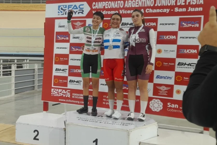 Este sábado la pedalista chileciteña de ACOR se subió al podio en el Campeonato Argentino de Pista, logrando tres medallas, una de cada metal.