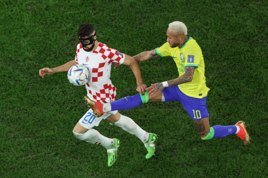 La particularidad de Gvardiol es que juega con una máscara. ¿Por qué? Diez días antes de la Copa del Mundo el defensor croata tuvo un fuerte choque con Willy Orban, su compañero en Leipzig, un suceso por el que casi se pierde el certamen.