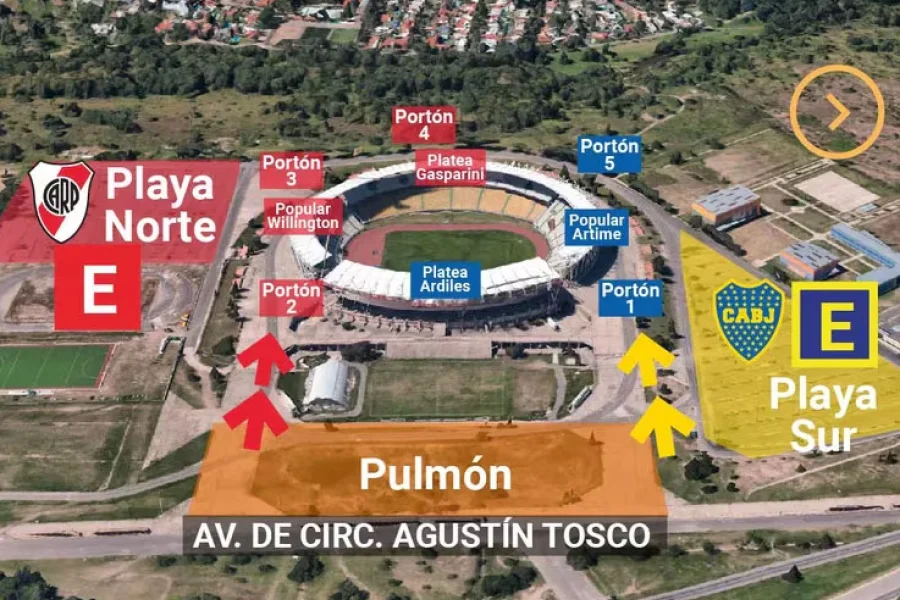 Las Tribunas Norte, Willington y Gasparini, estarán destinadas a los fanáticos de River; mientras que las Sur (Ardiles y Artime) cobijarán a los fanáticos de Boca. “25 mil entradas para cada una de las hinchadas, independientemente que sean popular y platea. Las entradas van a ser digitales. La empresa que comercializa ha decidido que una vez que estén aquí, independientemente que sean digitales las entradas, deberán entrar con su DNI físico”, indicó el Ministro de Seguridad de Córdoba, Juan Pablo Quinteros, en una conferencia de prensa.