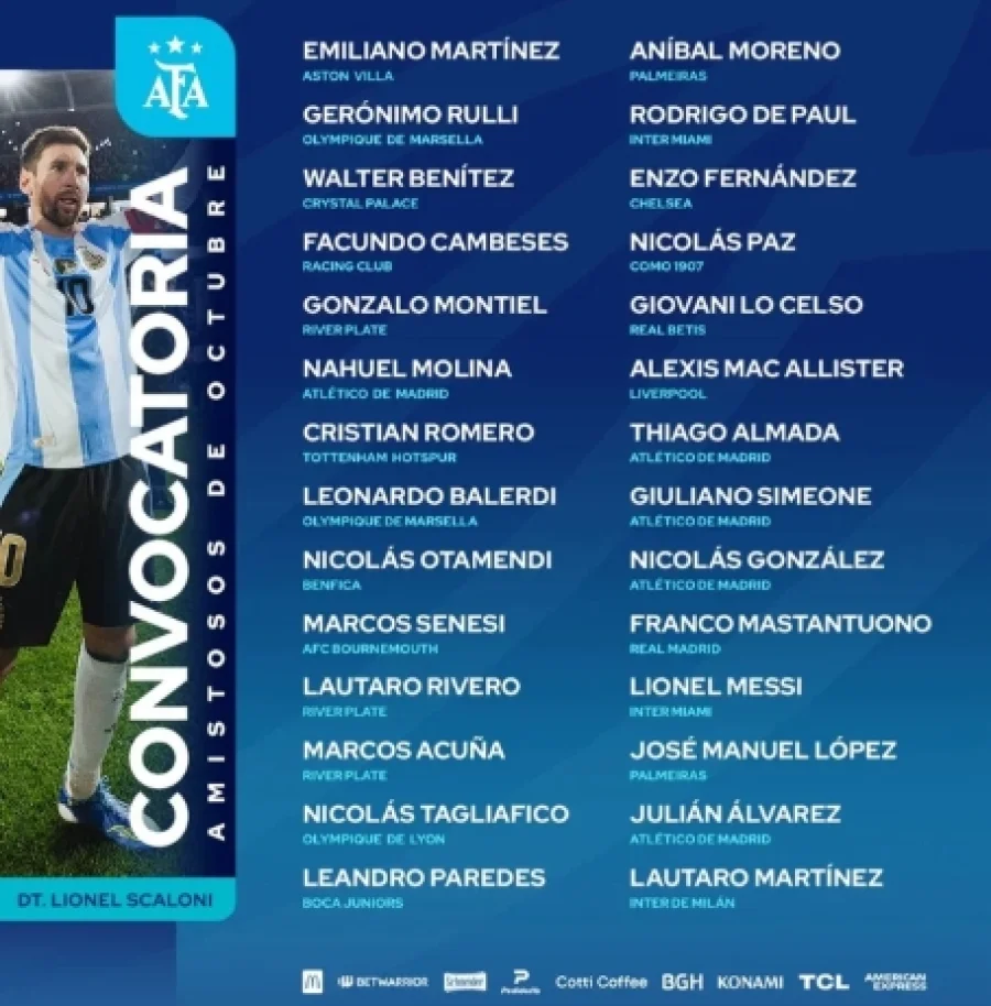 Por otro lado, fuera de las novedades por los nuevos convocados, se sumaron a la nómina los regresos del mediocampista del Chelsea Enzo Fernández y el defensor del Bournemouth Marco Senesi, mientras que José López, la figura de Palmeiras, se mantuvo en la consideración del entrenador.