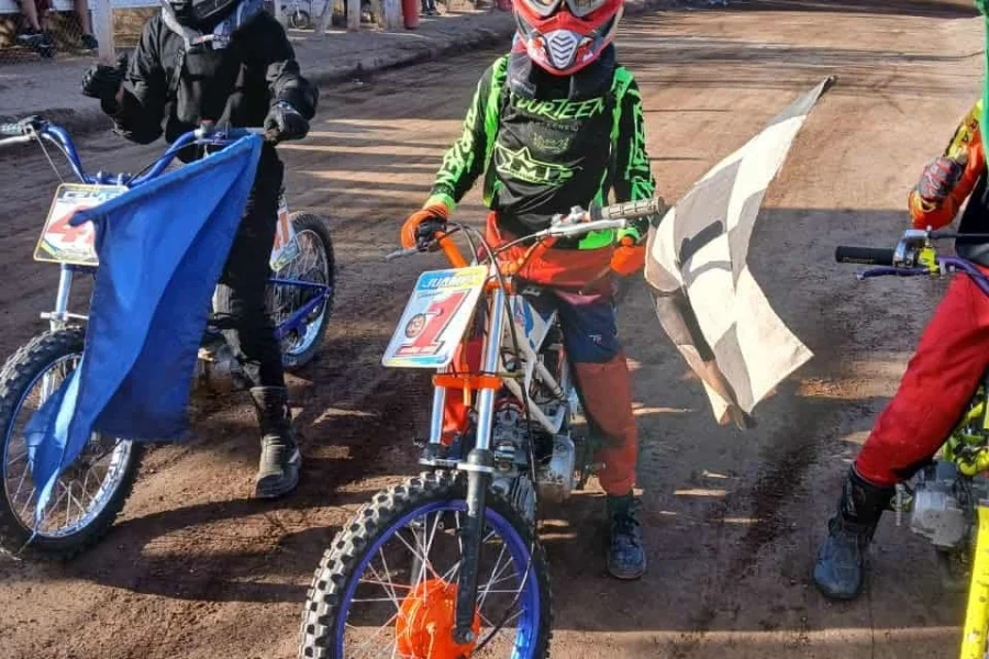 Juampi Pereyra #99, de solo 13 años, volvió a demostrar su talento en la octava fecha del Campeonato de Motociclismo, que se disputó en el "Ovalo de La Quebrada", lo que le permitió subirse a lo más alto del podio.