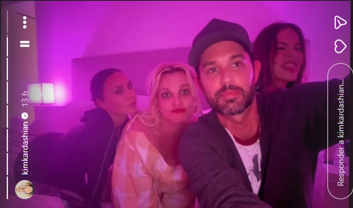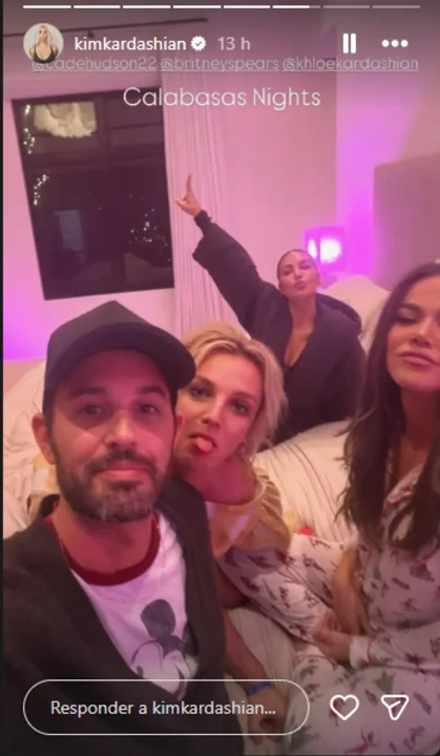 Kim Kardashian fue la encargada de mostrar el detrás de escena de la reunión. En una de sus historias de Instagram, publicó una selfie tomada sobre una cama donde se la ve junto a Britney, Khloé y Hudson.