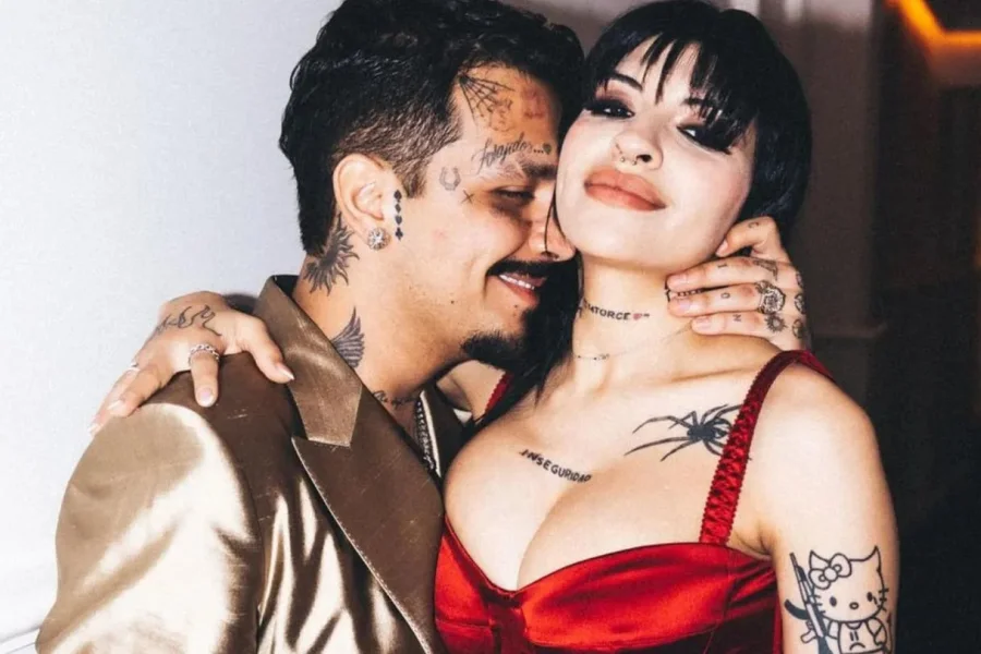 La pareja de músicos dio el presente en la gala “Person of the Year”, que homenajeó la carrera de Laura Pausini, y su recorrido por la alfombra roja no pasó desapercibido. Ella impactó con un vestido rojo satinado muy ajustado al cuerpo, de escote tipo corset y falda midi. Lo complementó con sandalias y una minibag al tono.