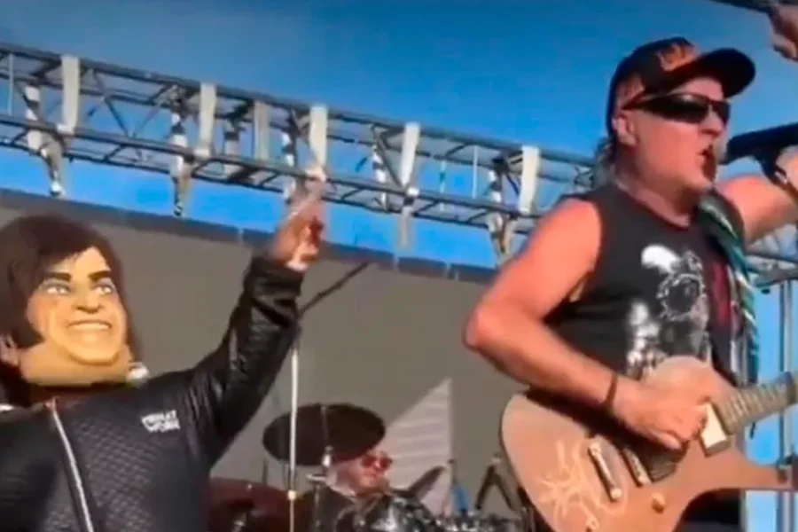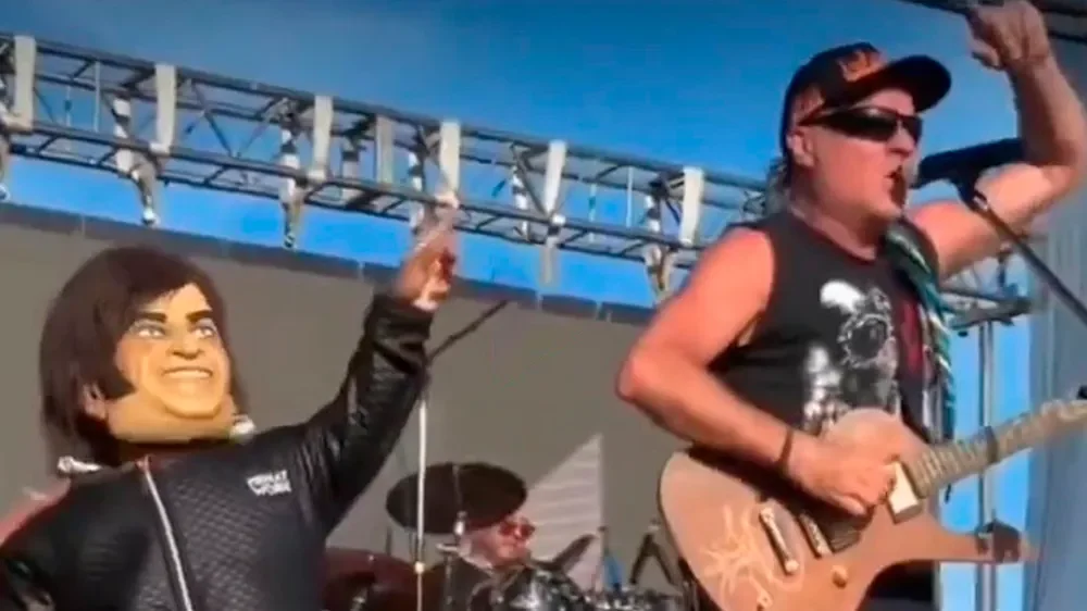 Mientras la banda interpretaba el popular tema "Panic Show", un hombre de baja talla disfrazado de Javier Milei (con una máscara que imitaba el rostro del Presidente) apareció sobre el escenario. El doble, que imitaba los gestos del mandatario, saltó y bailó junto al vocalista, Chizzo, generando un momento de burla que fue rápidamente viralizado.