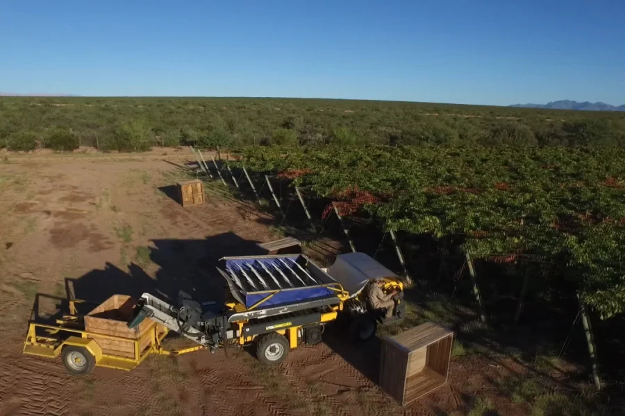 Además, cuenta con el sistema de cosecha mecanizada DOV (Dry On Vine), secando el fruto aún sobre el viñedo, lo que otorga una alta garantía de inocuidad al producto.