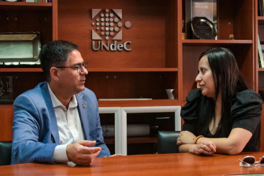 El rector de la Universidad Nacional de Chilecito, Abg. César Alberto Salcedo, recibió a la rectora electa de la Universidad Nacional de La Rioja, Dra. Natalia Álbarez Gómez, en una reunión que marcó el inicio de un camino conjunto orientado a fortalecer el trabajo interinstitucional.