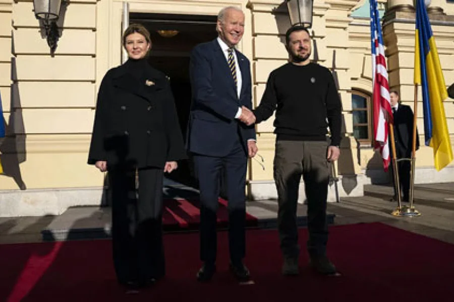 Biden hizo declaraciones y se reunió con su par ucraniano en el Palacio de Mariinsky para anunciar una partida adicional de 500 millones de dólares en ayuda estadounidense y reiterar a Kiev el apoyo de Estados Unidos y de sus aliados mientras continúa el conflicto.