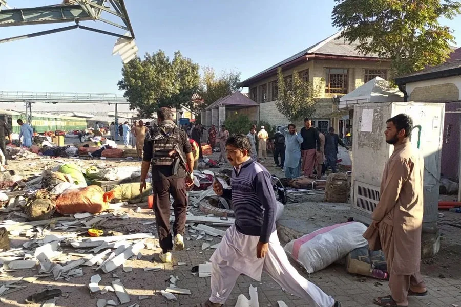 Las fuentes precisaron que un terrorista suicida hizo estallar su chaleco explosivo entre una multitud de más de 100 personas, entre los que se encontraban soldados, policías ferroviarios y pasajeros civiles.