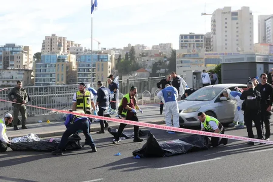 El jefe de la Policía de Jerusalén, Doron Torgeman, dijo que dos hombres a bordo de un auto, uno armado con un M-16 y el otro con una pistola, "abrieron fuego en horas de la mañana en el lugar del atentado".