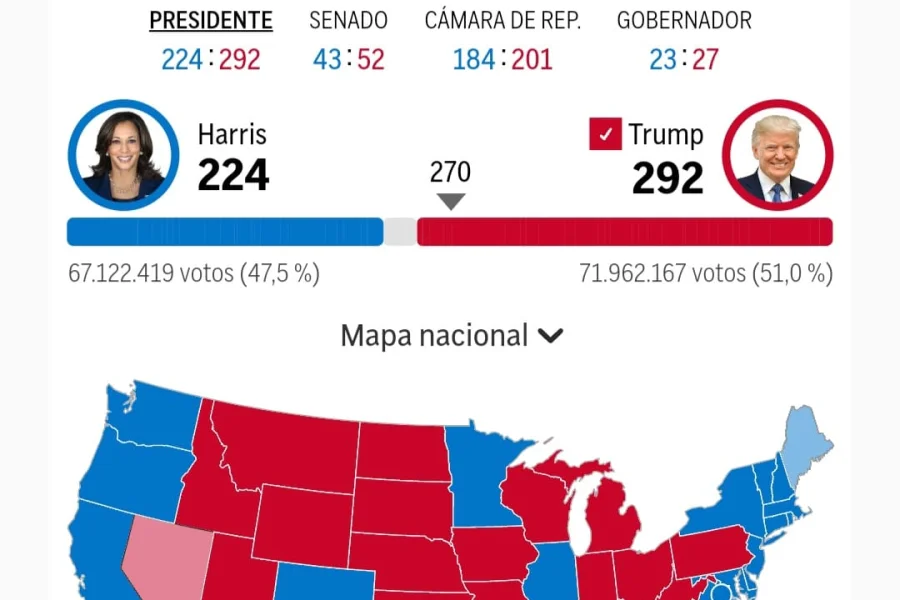 - El expresidente obtuvo 277 electores y se impuso en todos los estados claves.