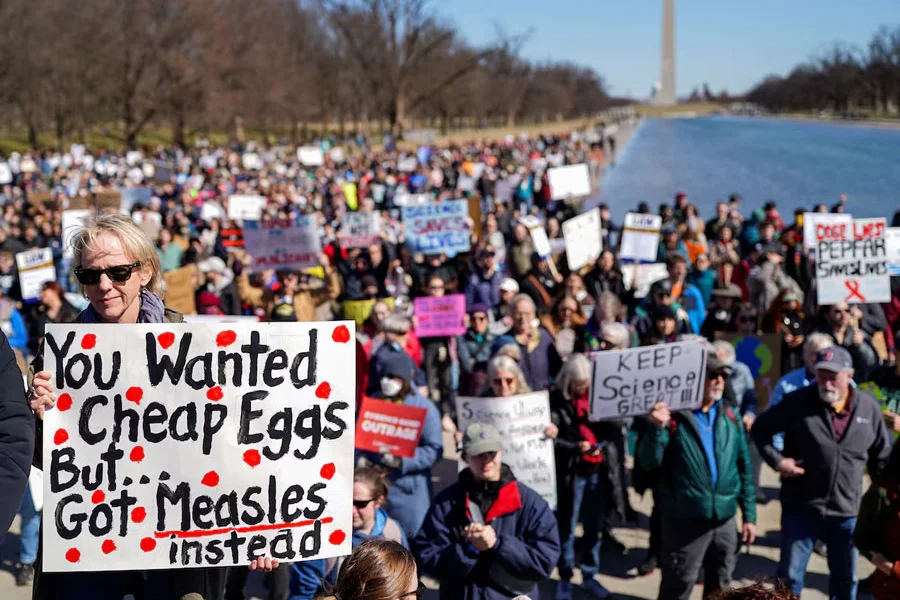 En Boston, cientos de personas marcharon con pancartas en las que se leían consignas como “No al autoritarismo” y “Basta de cleptocracia”, en una jornada calificada por los organizadores como un “Día Nacional de Acción”.