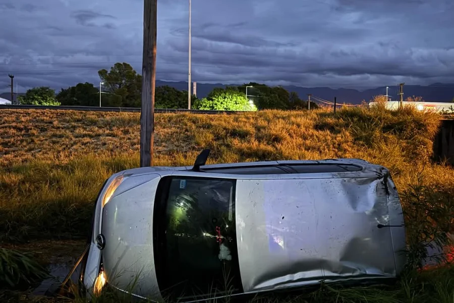 Otro hecho de tránsito ocurrió también en la mañana de este martes, pero en la localidad de Aimogasta, por Ruta N° 60 (a 300 metros de Av. 24 de Mayo). Al llegar al lugar, personal policial observó a una camioneta volcada al costado de la banquina, logrando entrevistar al conductor de la misma, un hombre de apellido González (51) con domicilio en la provincia de Catamarca, quien al momento del hechocirculaba acompañado por tres personas más todas mayores de edad. Al respecto, el conductor manifestó que circulaban desde El Salado hacia la ciudad de Aimogasta, y por razones que aún se están investigando perdió el control de la camioneta, lo que provocó que el vehículo se desviara hacia la banquina y diera un vuelco.