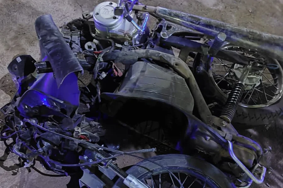 Lejos de detenerse, Barros se dio a la fuga a alta velocidad por Avenida Las Palmeras, donde terminó chocando contra una motocicleta Motomel Blitz gris con azul, propiedad de Jorge Alfredo Almonacid (22), que estaba estacionada en el lugar. La moto quedó con casi daños totales tras el impacto.