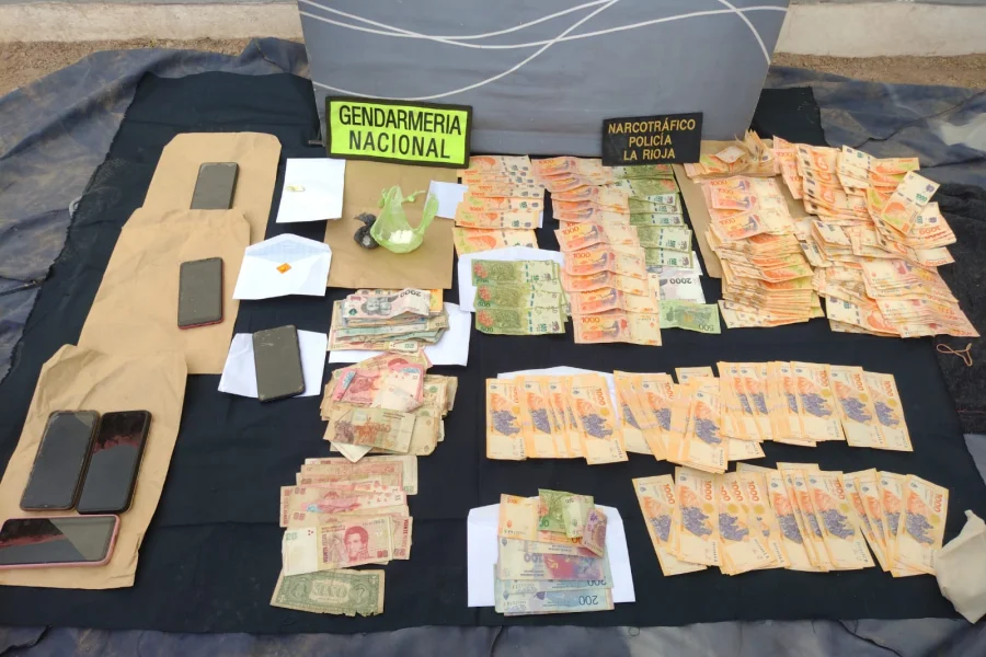 Durante el operativo se incautaron sustancias estupefacientes, incluyendo 63 dosis de cocaína (fraccionadas y embaladas para la comercialización) y 53 gramos de la misma sustancia sin dosificar. También se confiscaron 26 teléfonos celulares, 1 balanza de precisión tipo gramera, 2 pendrives, $100 USD y una suma de dinero en efectivo de $641.310, entre otros elementos de corte, estiramiento y dosificación de sustancias. Asimismo, se secuestró un Ford Fiesta y una moto Yamaha.