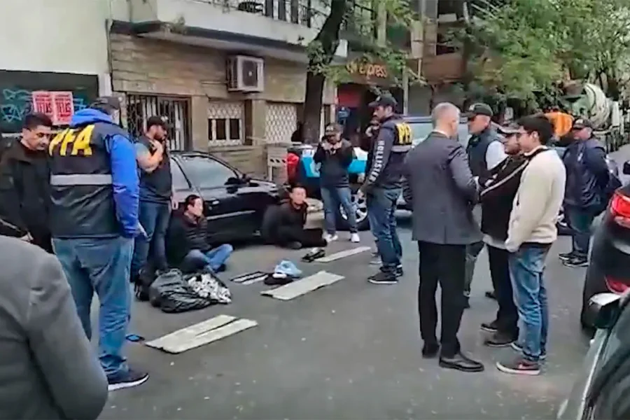 La zona es un lugar de comercio de productos principalmente importados por lo que es frecuente que se realicen operativos de prevención fiscal y aduanera. Así fue hoy el área de Delitos Federales detectaron a los sospechosos que vestían rompevientos y se pusieron visiblemente nerviosos, palpando sus cinturas como si portaran armas.