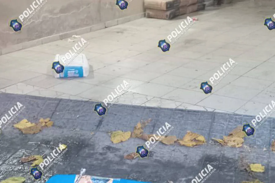 Los uniformados, tras realizar un rastrillaje en el lugar mencionado encontraron los siguientes elementos: Una Carpa de color azul. Una Bolsa de Cemento Revoque fino. Un monopatín de color negro y rojo. Un casco infantil de color rojo. Doce cajas octogonal y una llave cruz.