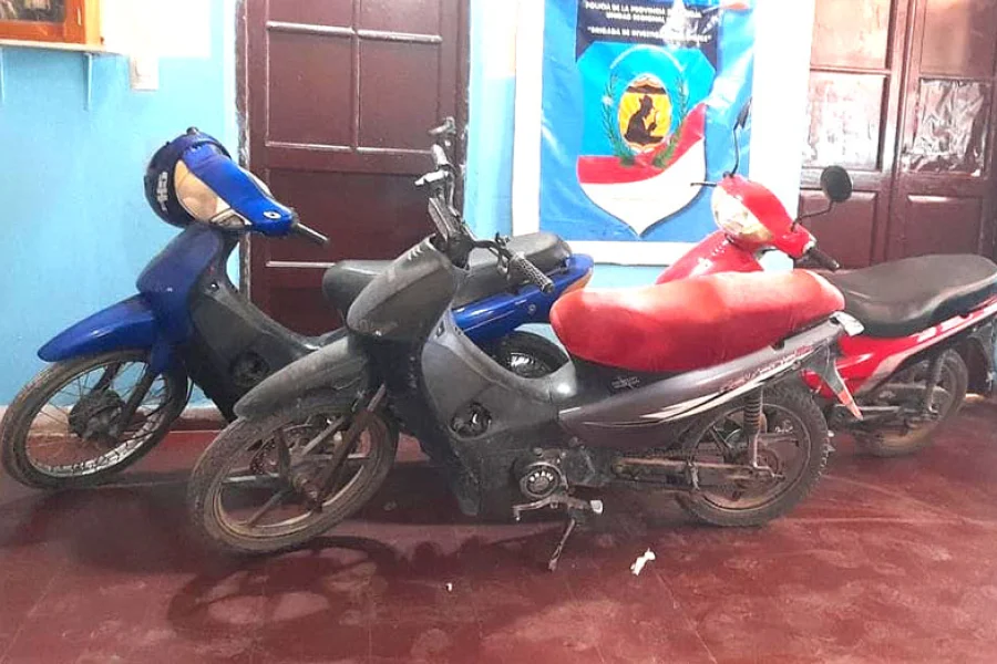 La primera motocicleta fue encontrada por el camino del B° El Alto, tratándose de una moto marca Keller 110cc, de color azul con negro sin dominio adosado, con detalle de una letra a de color amarillo, sin espejos retrovisores y con un casco de color azul, que había sido sustraída entre las horas 05:00 y 06:30, de un local ubicado por calle Pasaje Catamarca, propiedad de Nicolás González de 37 años de edad.