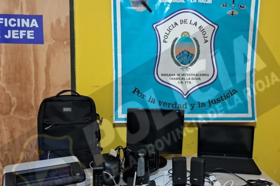 Tras la denuncia, personal policial de dicho Departamento, realizó tareas investigativas logrando con éxito la recuperación de una pava eléctrica, un monitor de 24", un estabilizador, un módem de internet, un routers, un mause, un par de parlantes de computadora, una impresora, una computadora portátil con mause, un alargue zapatilla, una mochila y documentación varias.