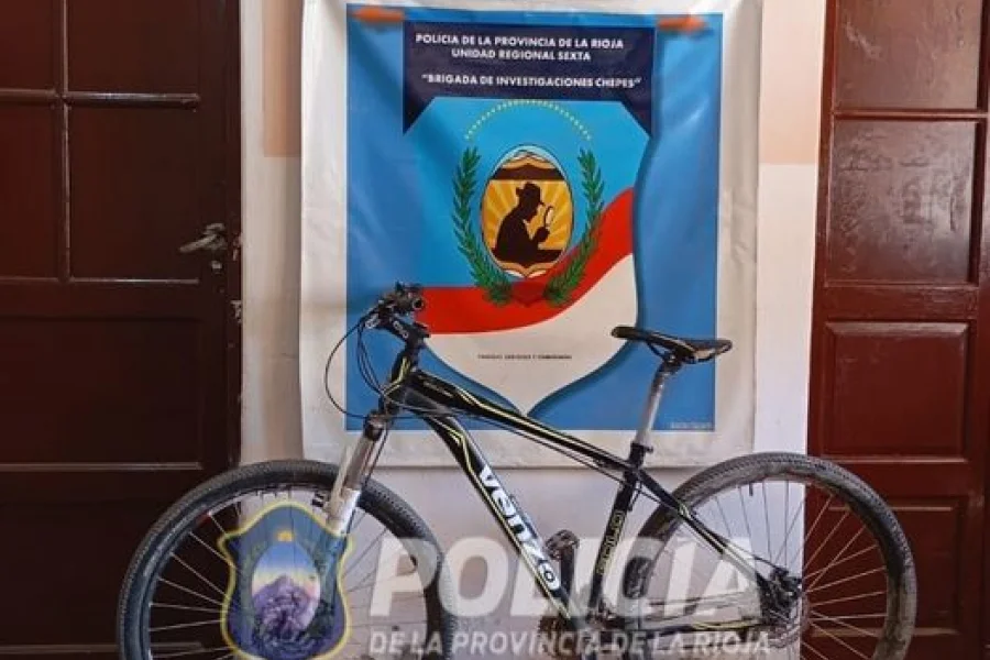 Personal policial de la ciudad de Chepes, logró la recuperación (01) bicicleta rodado 29". Mediantes tareas investigativas de rastrillaje en la zona, logran la demora de una persona de sexo masculino que al momento de la misma tendría consigo dicho elemento en su poder, siendo este trasladado a cede policial quedando a disposición del juez de turno.