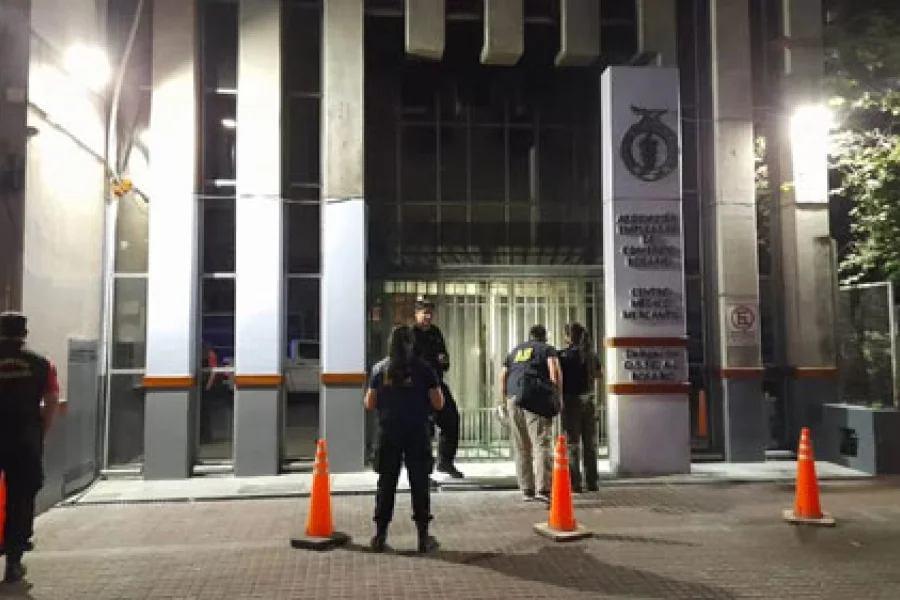 El segundo ataque se llevó a cabo en Corrientes al 400, en el microcentro de Rosario, donde está el edificio del Sindicato de Empleados de Comercio y OSECAC, su obra social. Los que arrojaron la bomba eran dos personas que caminaban por Corrientes y luego huyeron por la calle Tucumán, donde aparentemente se subieron a un auto que los estaba esperando, según explicó este martes la prosecretaria de Empleados de Comercio Silvana Crocci.