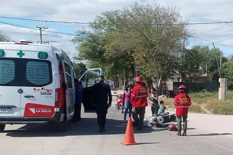 El siniestro vial fue a las 13.50hs de este lunes, por Avenida San Nicolás de Bari y Ruta N° 38. Donde Rita Peña de 45 años y un menor por motivos que se desconoce, caen a la cinta asfáltica. Ambos debieron ser trasladados al hospital.