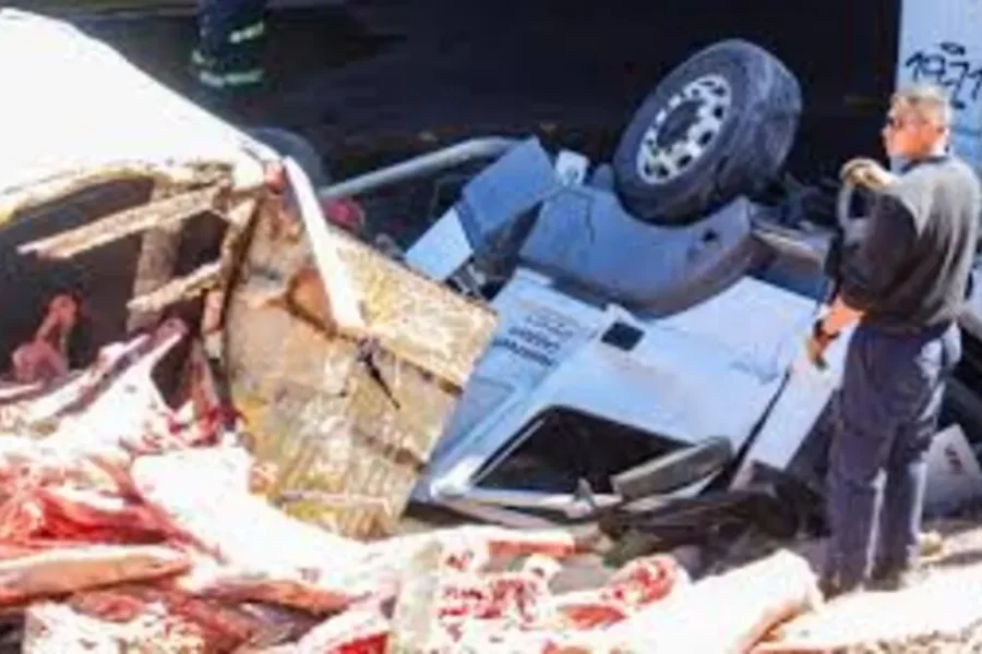 Este lunes al mediodía, un accidente en el Acceso Este de Guaymallén, de la provincia de Mendoza, provocó un escenario caótico: un camión frigorífico cargado con carne volcó desde un puente hacia la calle Cañadita Alegre, tras chocar con una camioneta utilitaria que transportaba helado. La cabina del camión quedó destruida y el acoplado esparció la carga sobre la vía.