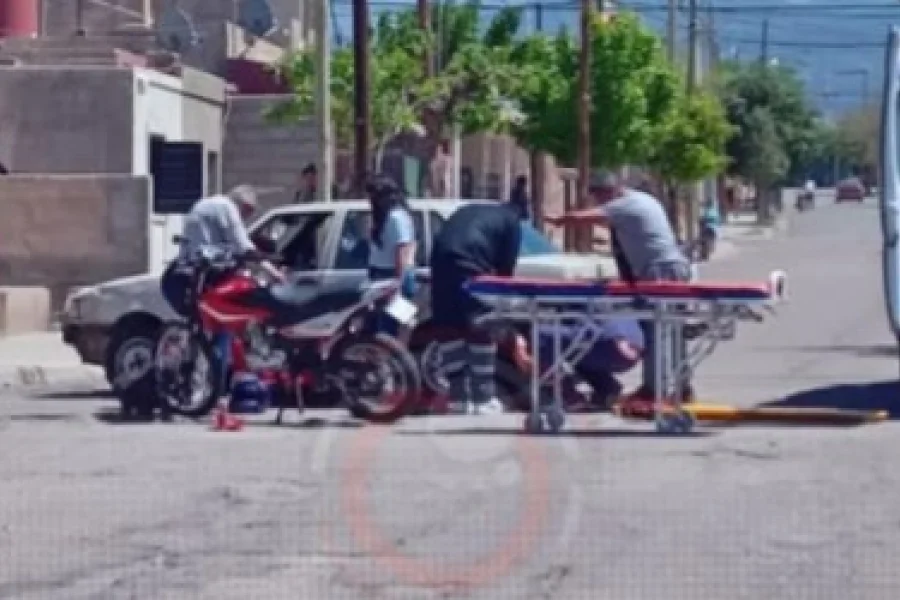 En horas del mediodía de este jueves 2 de octubre, alrededor de las 12.50, se registró un siniestro vial en la intersección de calle San Juan y Santiago del Estero, en pleno casco céntrico de Chilecito.