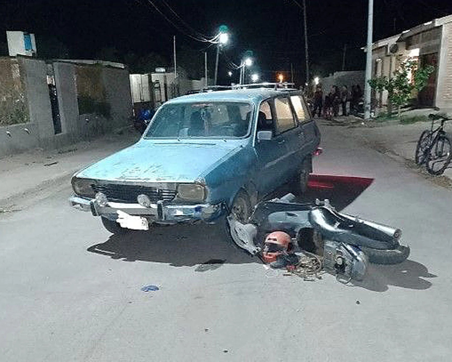 El hecho vial fue este Lunes a la noche, en calle La Plata de la localidad de Ulapes, donde se produjo un accidente de tránsito que involucró a un automóvil Renault 12 y una motocicleta Corven Energy 110. Según informó la policia, el vehículo mayor circulaba de este a oeste cuando colisionó con la motocicleta que transitaba en sentido contrario.