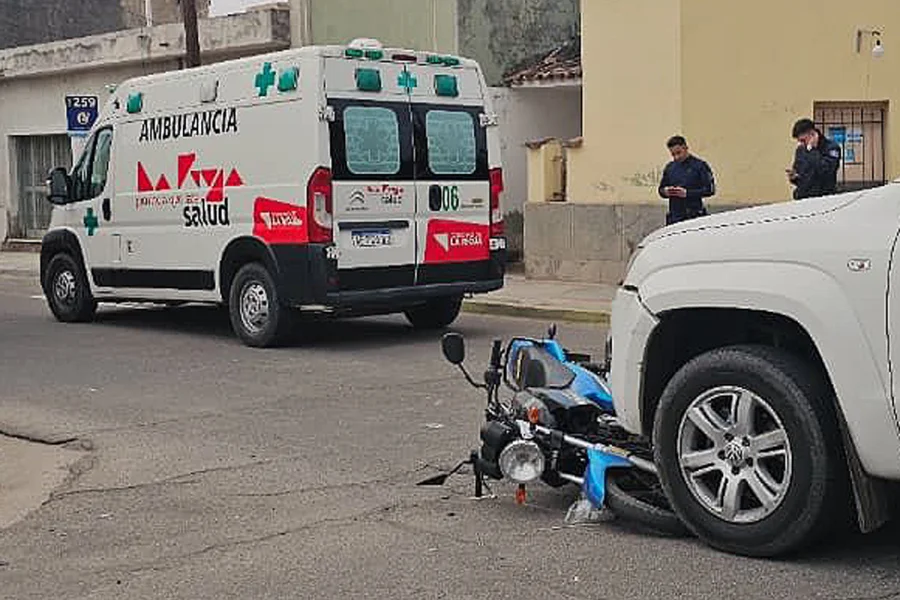 El hecho vial fue este lunes a la tarde, en las calles Hipólito Yrigoyen y Urquiza en pleno centro d ela capital, donde los protagonistas fueron  una camioneta Volkswagen Amarok y una motocicleta Yamaha YBR.
